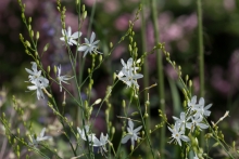 Dafür strotzen die Hemerocallis und die Glockenblumen vor Kraft und überbieten sich mit Blüten. Und die Rosen erst! Ein wahrer Blütenrausch. Peucedanum rablense, Filipendula vulgaris und Anthericum ramosa mögen die Hitze, und das Panicum in verschiedenen Varianten ebenso. Und über Nepeta brauchen wir gar nicht zu reden. Da zeigt sich die Qualität von Steppenstauden! Und die späten Alliums wie sphaerocephalon oder cernuum entwickeln sich fröhlich und schüren Vorfreude. Einer der Eremurus blüht zum ersten Mal nach vielen Jahren.