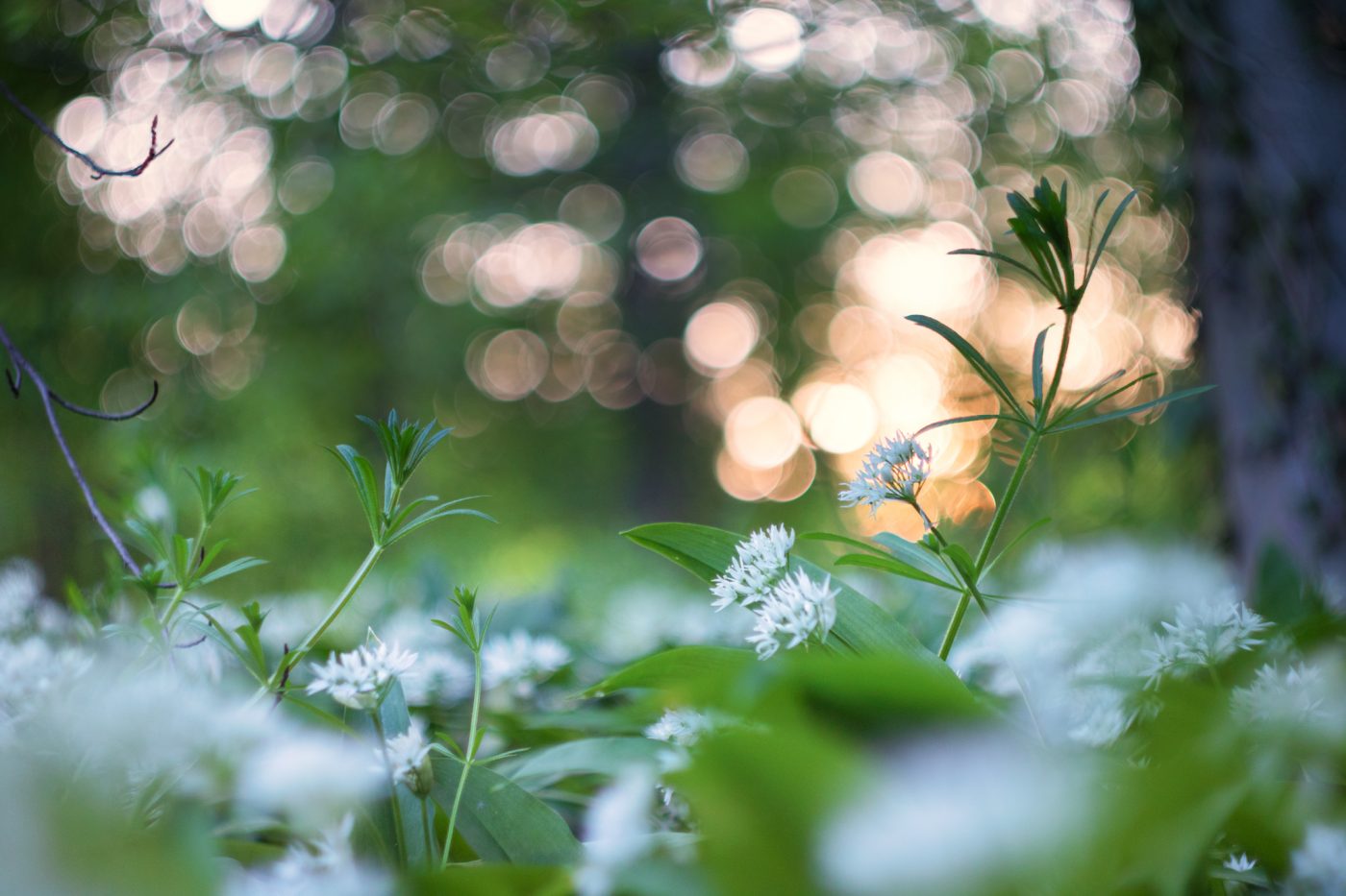 Hängen geblieben bin ich zum Sonnenuntergang in einem ganz unwissenschaftlichen Bärlauch-Wäldchen. Fotografiert mit dem Helios 44, regnet es Goldtaler vom Himmel.